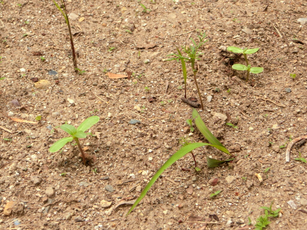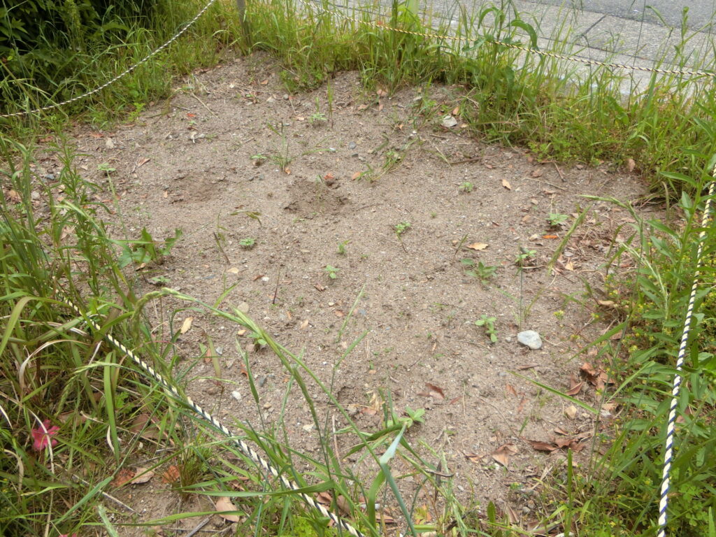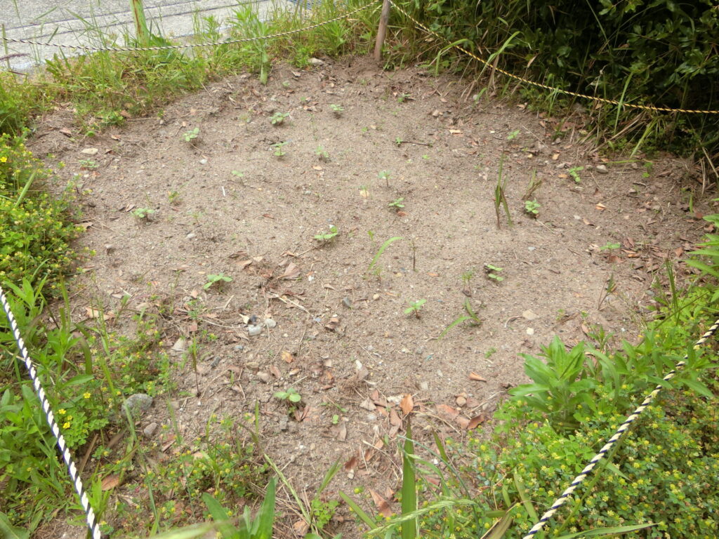 5月の定期清掃の際に、参加されたご家族にヒマワリの種まきを手伝っていただきましたが、2週間後に見てみたら、立派な芽が出ていました。