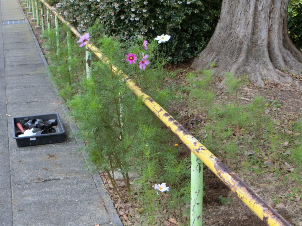 今年は種を蒔いていないので、今育っているコスモスは昨年蒔いた種の残りじゃないかと思いますが、驚きました。