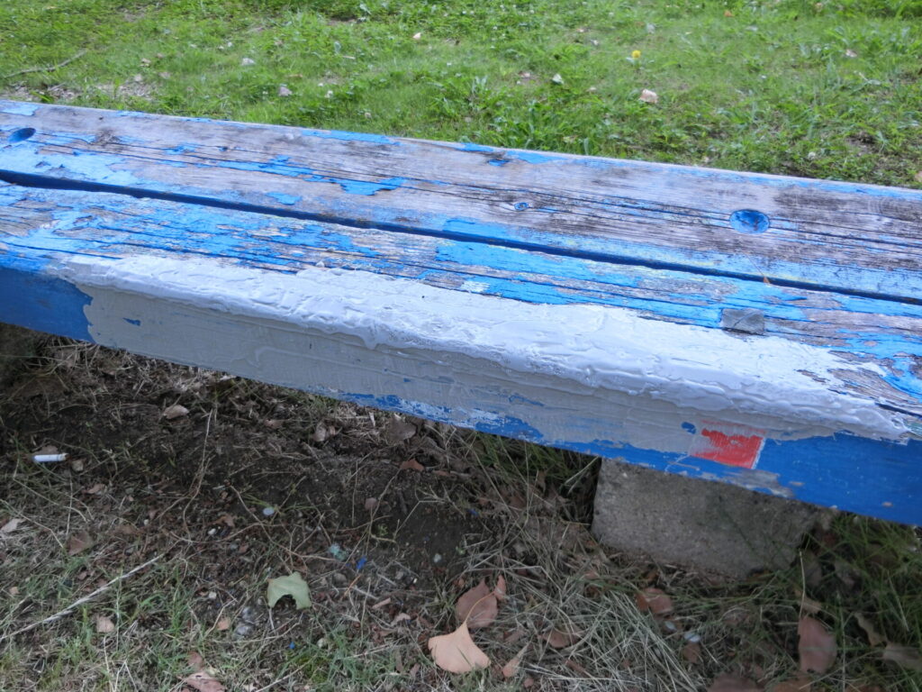 公園の西側のベンチの表面が劣化して削れていたので、土木事務所に修繕をお願いしていたのですが、最近になって修繕されていました。