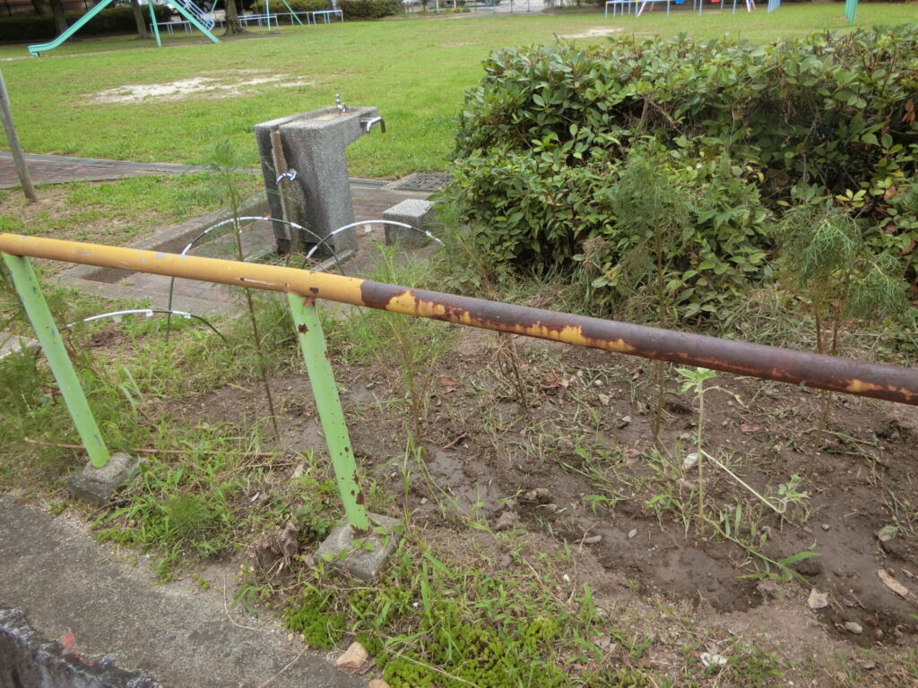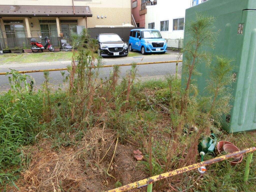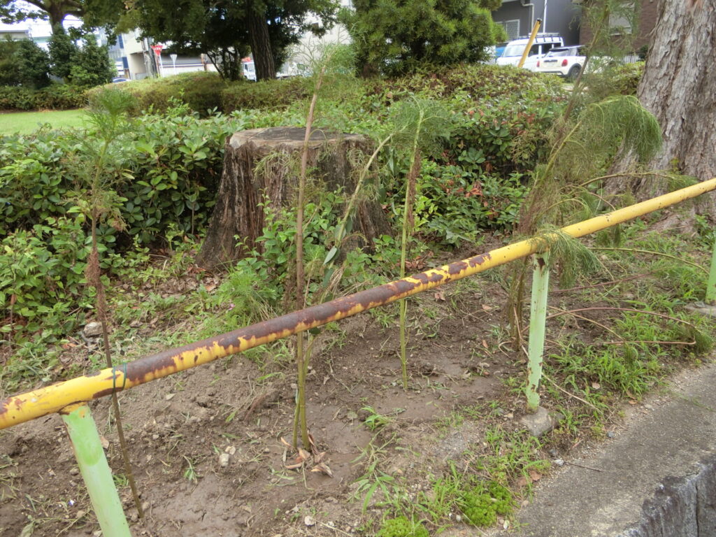 公園北側の高齢者施設前で、今年はマリーゴールドの苗を植えたり、ヒマワリの種を蒔いたりしましたのですが、どれもうまくいきませんでした。