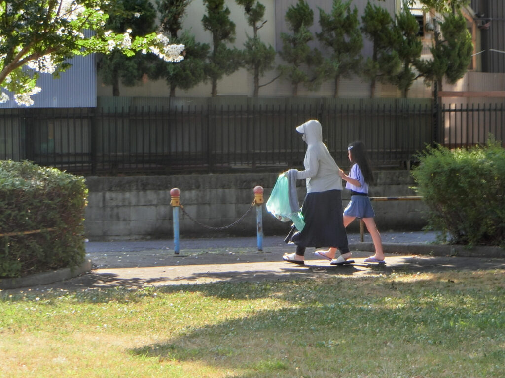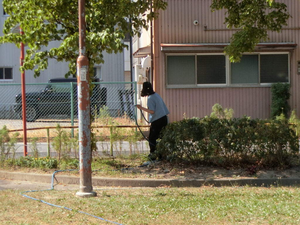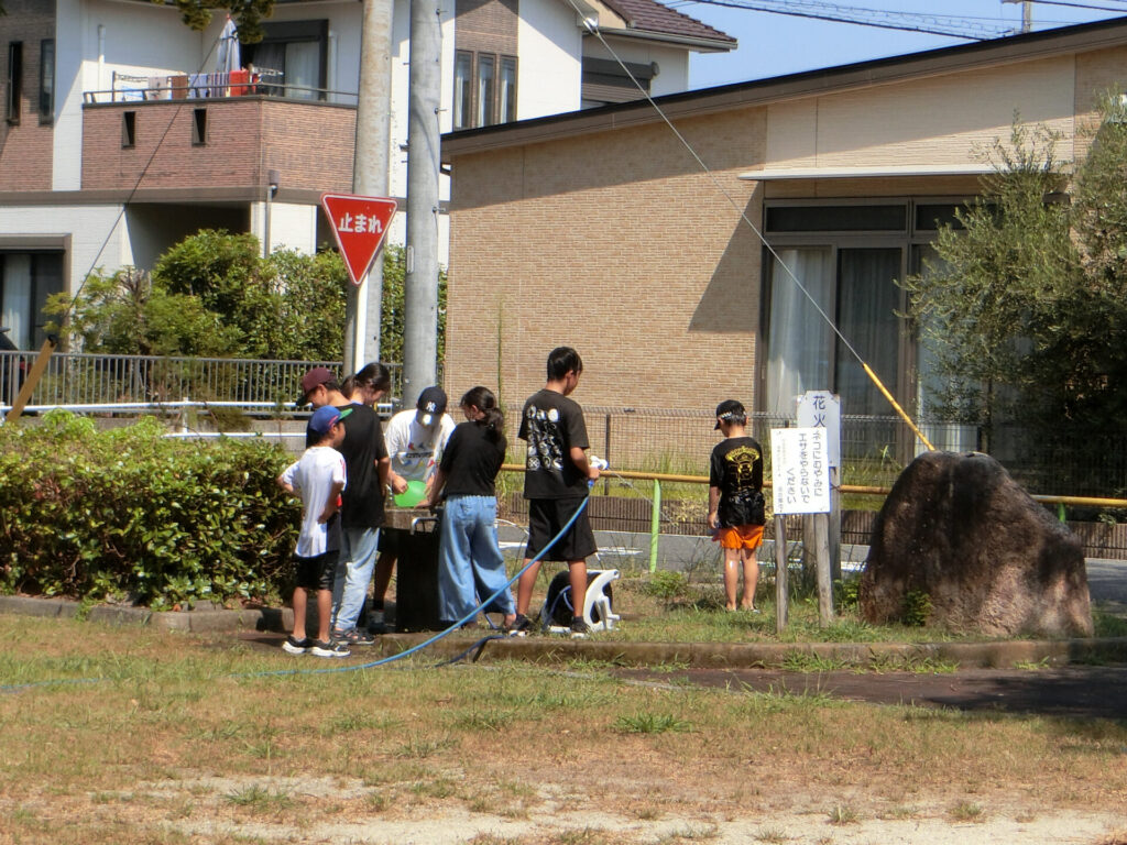 掃除の後、子供たちがホースで水遊びをしたり、水風船を投げ合ったりして遊びました。