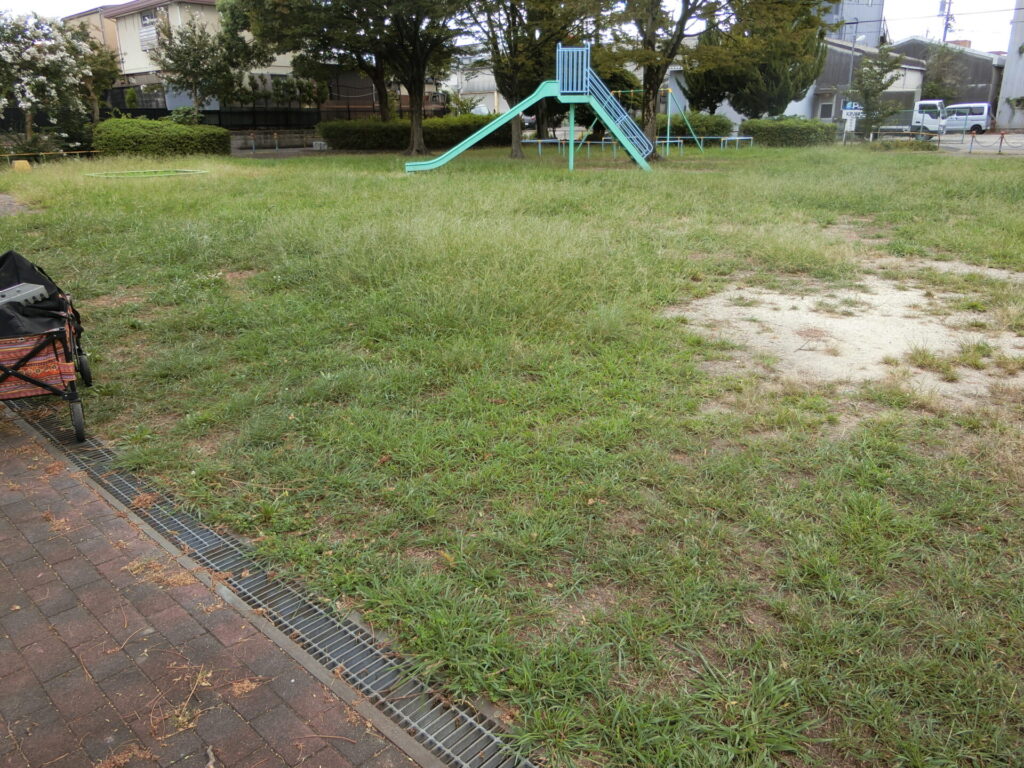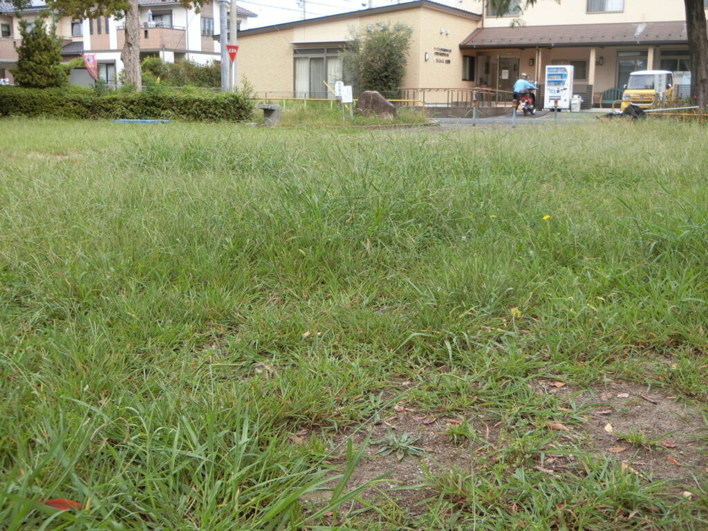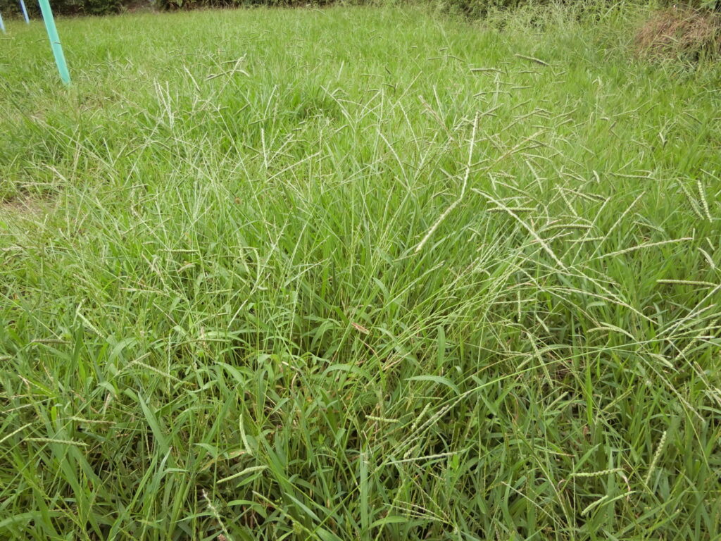 おそらくメヒシバだと思うのですが、公園で子供たちが駆け回るには邪魔な高さまで育ってます。