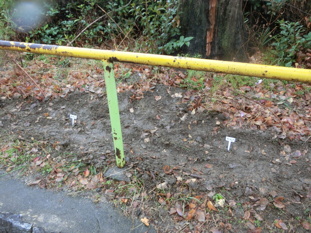 球根を植えたところに札を付けました。